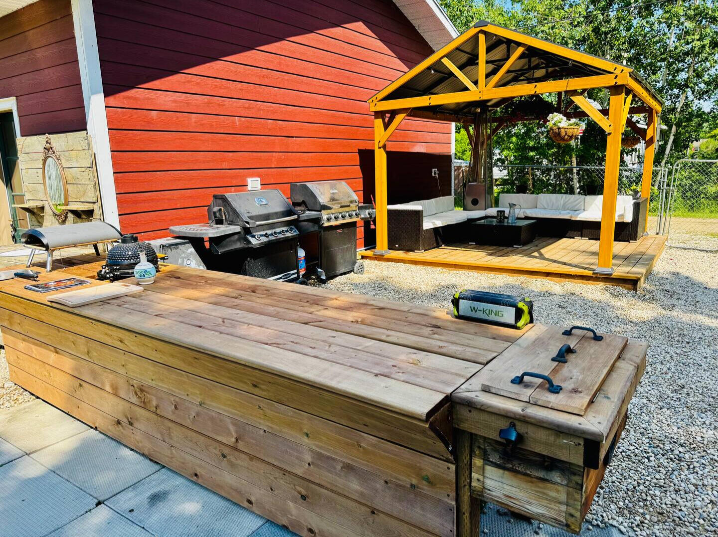 | Outdoor kitchen with BBQ grill, smoker, and pizza oven |