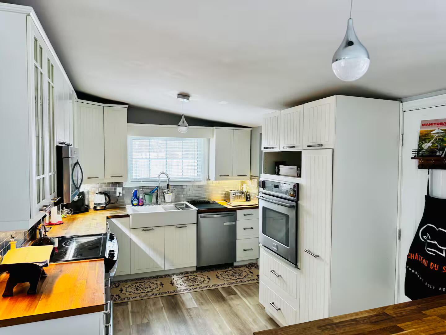 | Toaster, hot water kettle, wine glasses |